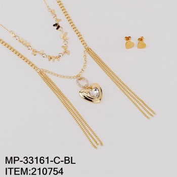 Juego de Collar y Aretes con Diseño de Corazones con Piedras Blancas y Cadenas en Chapa 14K