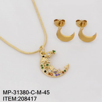 Juego de Cadena Dije y Aretes con Diseño de Luna con Piedras Multicolor en Chapa 14k Medida 45cm