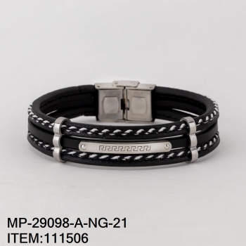Pulsera de Caballero de Piel con Placas de Acero y Diseño de Cadena Modelo Línea Fina Medida 21cm de Largo